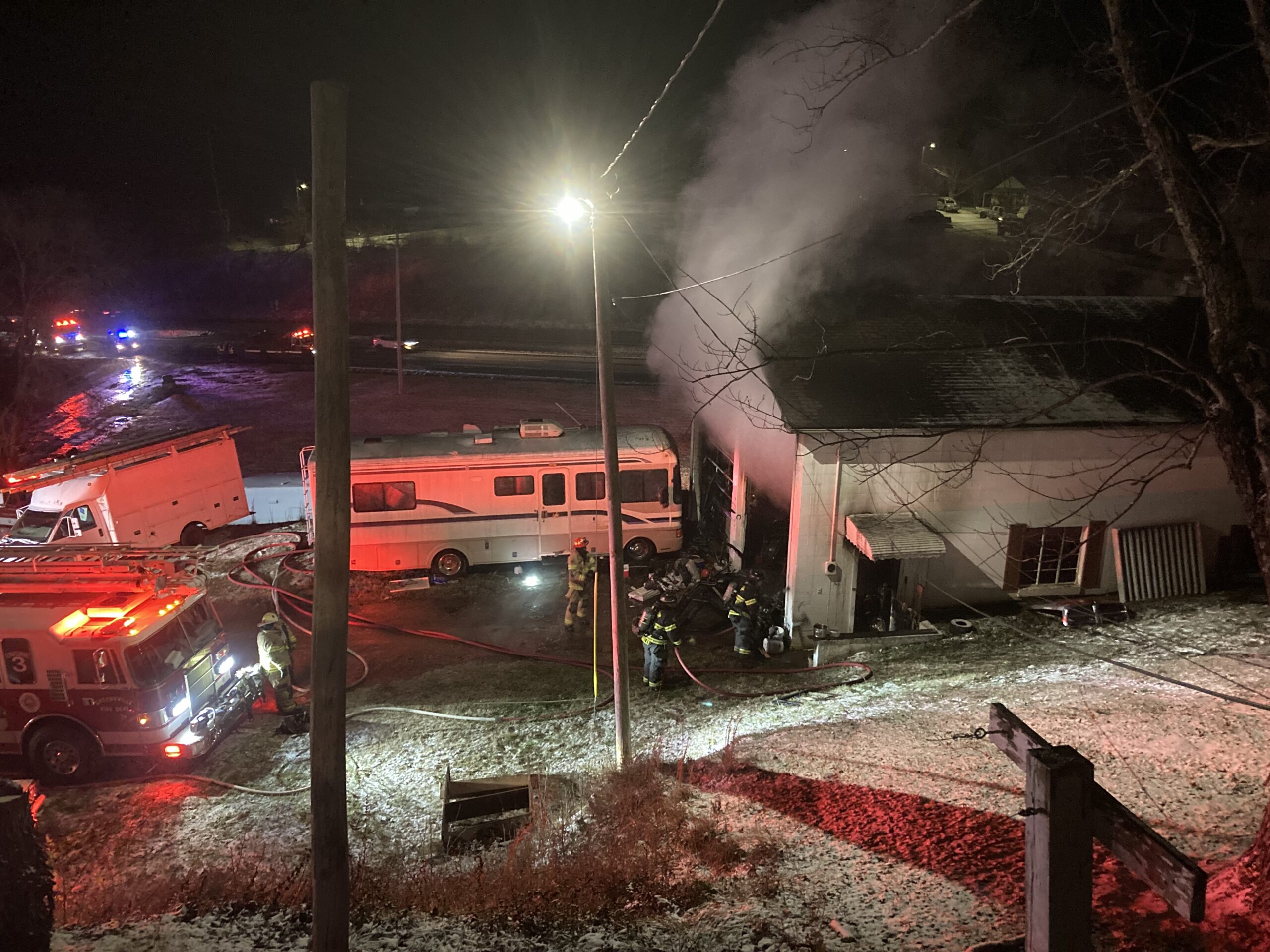 The Greeneville Fire department and Tusculum volunteer fire department responded to a garage fire in the 200 block of West Andrew Johnson Highway around 6 PM on Saturday. The contents and structure were heavily damaged by the fire. The fire rekindled just before 1 o’clock this morning.