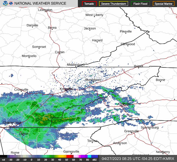 According to the National Weather Service in Morristown, showers and a few thunderstorms can be expected at times today and tonight. Some locations will likely see heavy rainfall, which may lead to localized flooding.