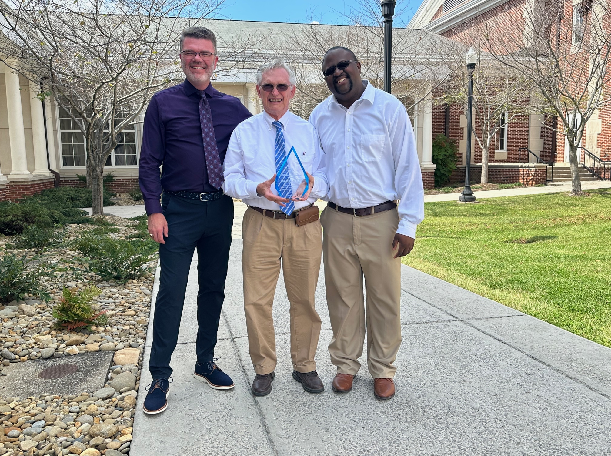 Malcolm McAvoy, former associate professor of speech, received the award from former student, Robert Pratt II, now dean of the Division of Humanities at Walters State.