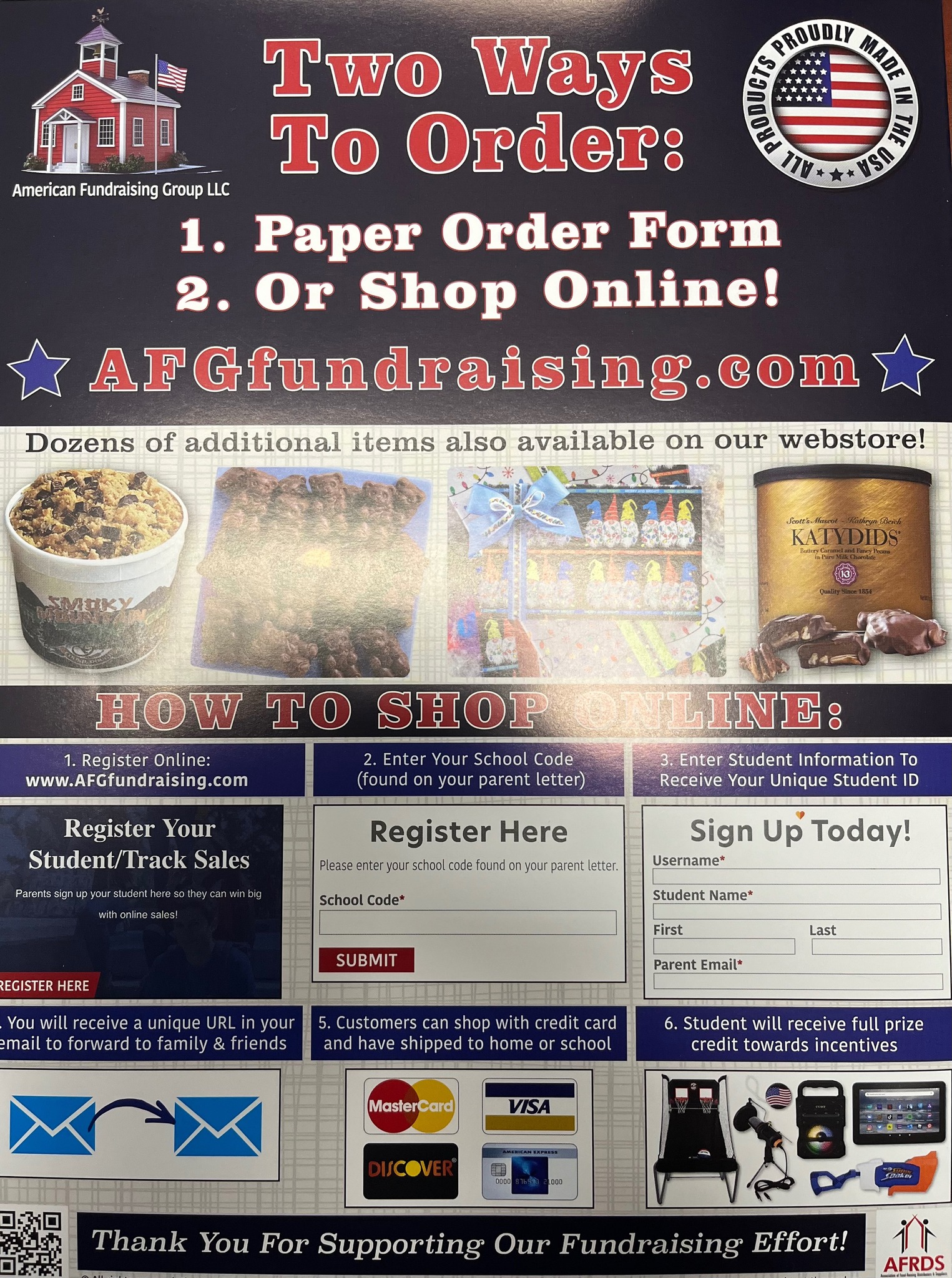 The school will be selling a variety of items like chocolate, cookie dough, popcorn, flowers, wrapping paper, and more, which can be purchased online at AFGfundraising.com or through the order forms.