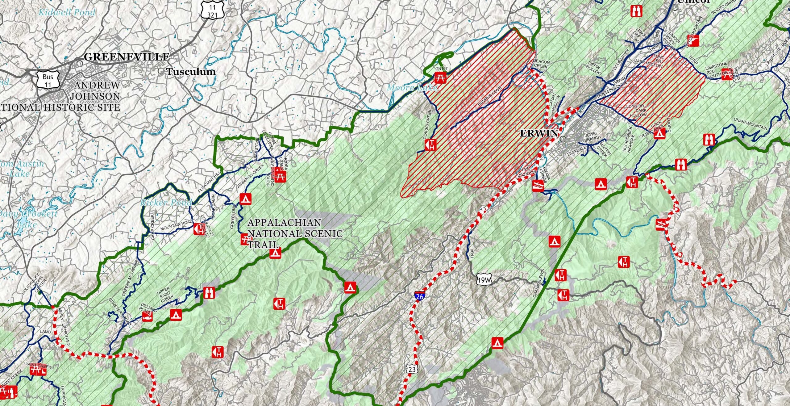 Campgrounds in both the Unaka and Watauga districts will remain closed for the remainder of the year. Portions portions of the Appalanchian Trail in Carter County remain closed. In some areas, hundreds of trees per mile block the route.