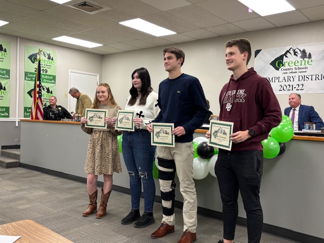 Four Greene County students from the Class of 2025 who have scored a 30 or higher on the ATC were recognized at the Greene County Board of Education meeting Wednesday