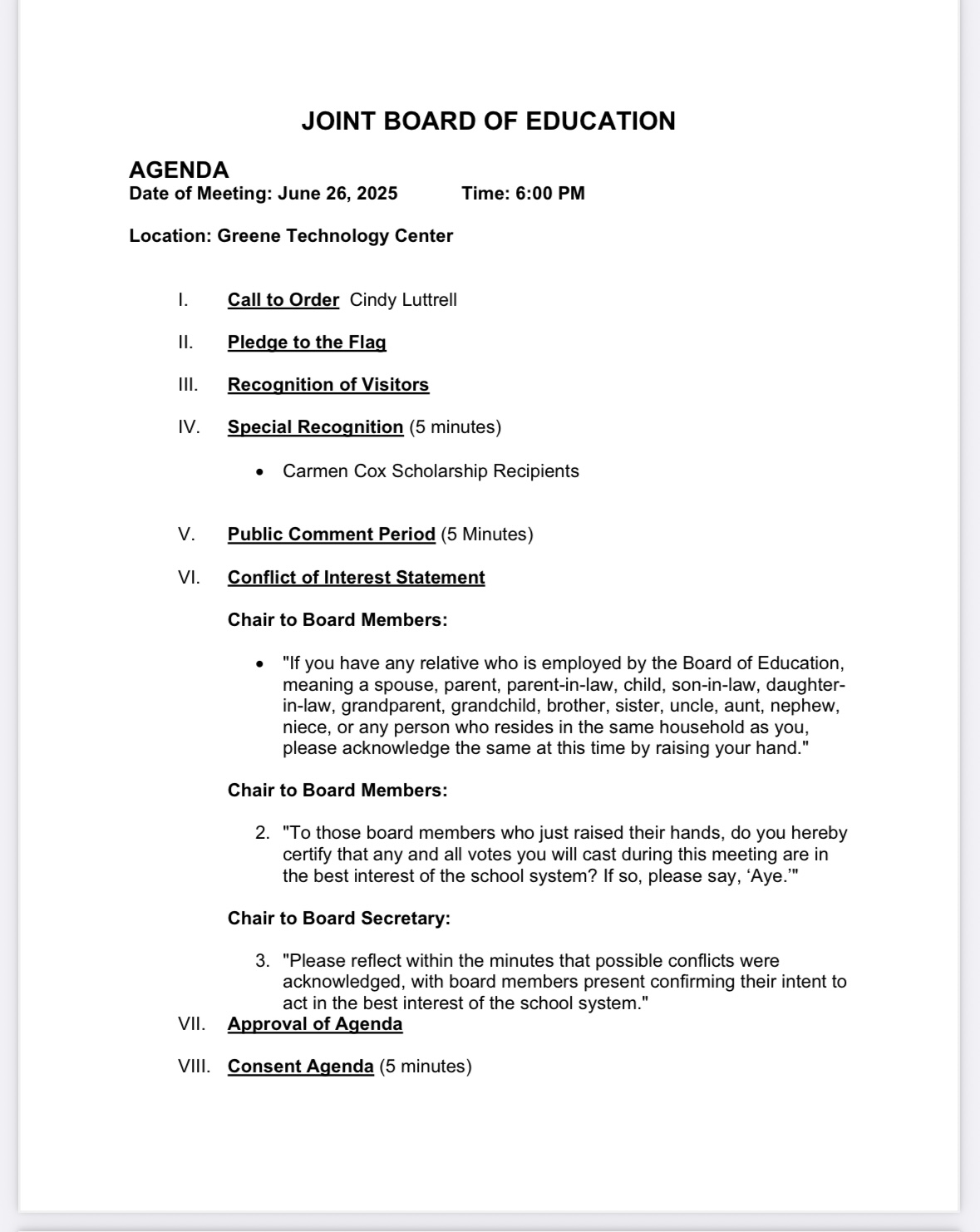 GREENE COUNTY BOARD OF EDUCATION