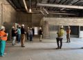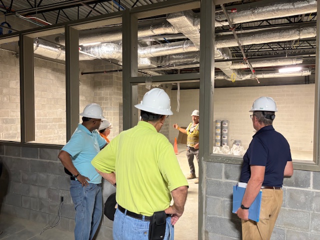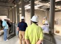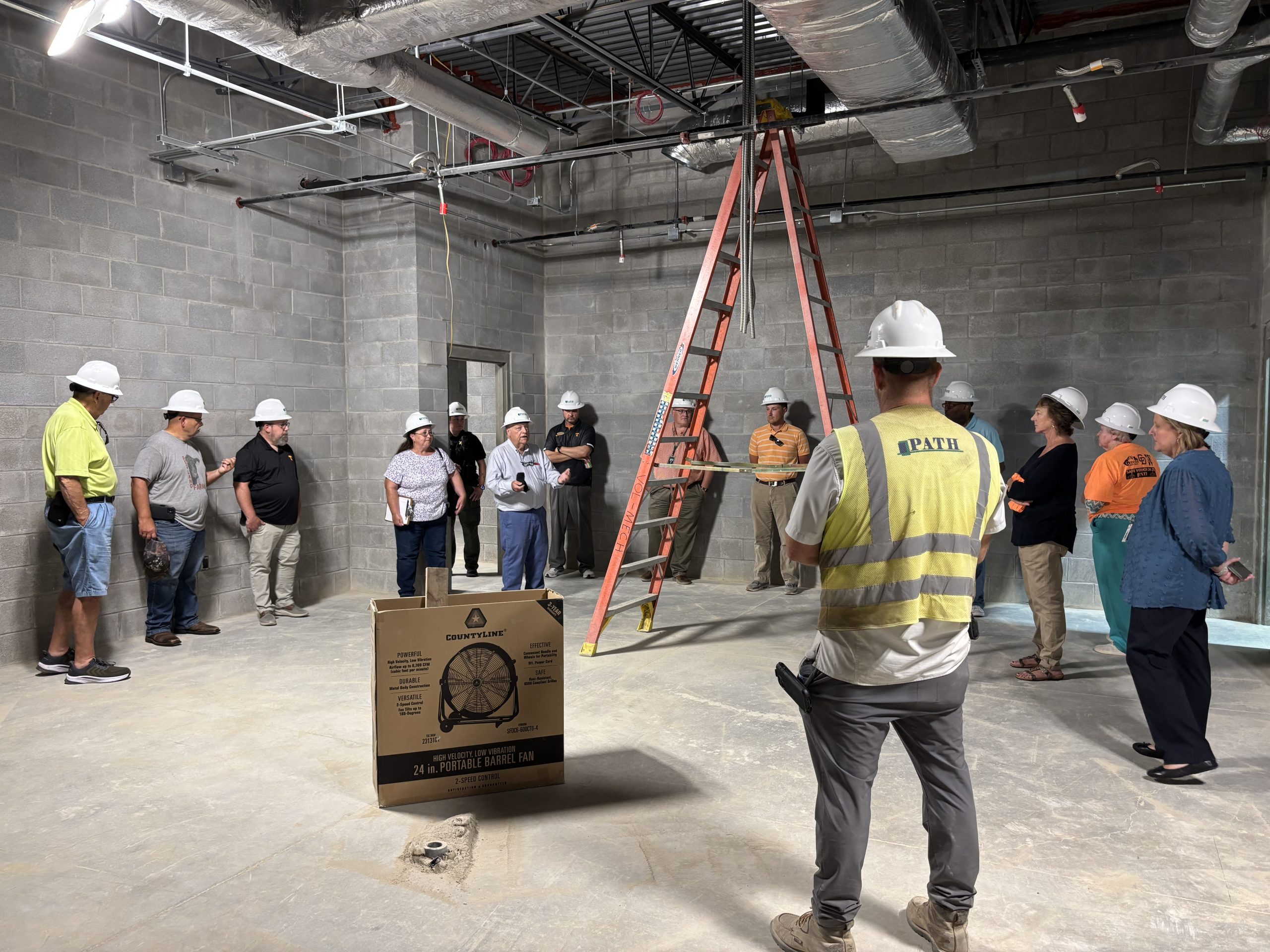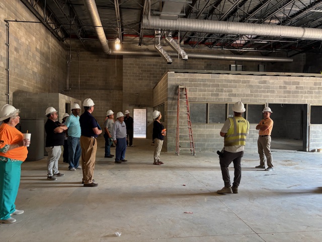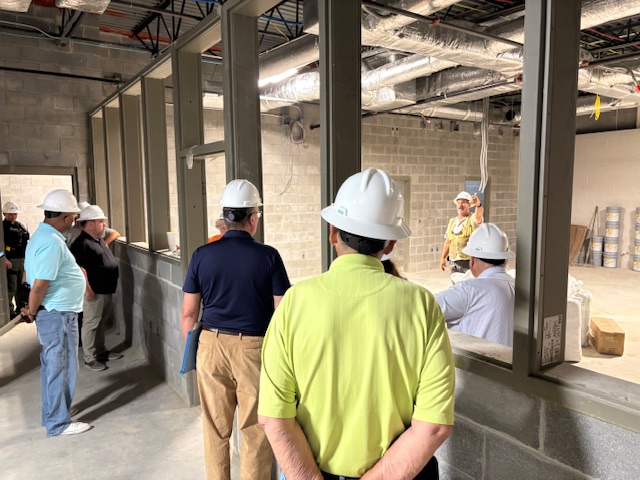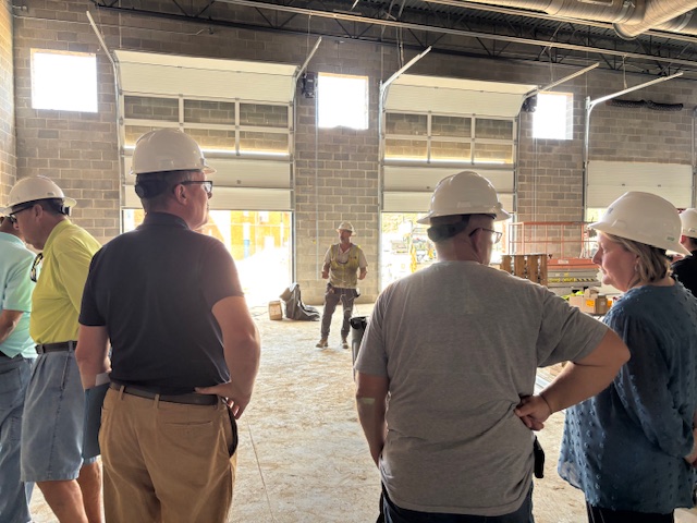 Construction Manager Mike Pressinell takes Education Committee members and others on a guided tour of the CTE building at West Greene.