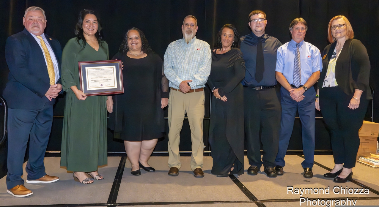 At the Tennessee Emergency Number Association Convention this week in Murfreesboro, Greene County 9-1-1 was honored as a Dispatch Incident of the Year award winner in the medium size category for agencies with four to six dispatchers.  Greene County has six during a normal shift but it was all hands on deck for a 48 hour period leading up to, during and following the disaster.