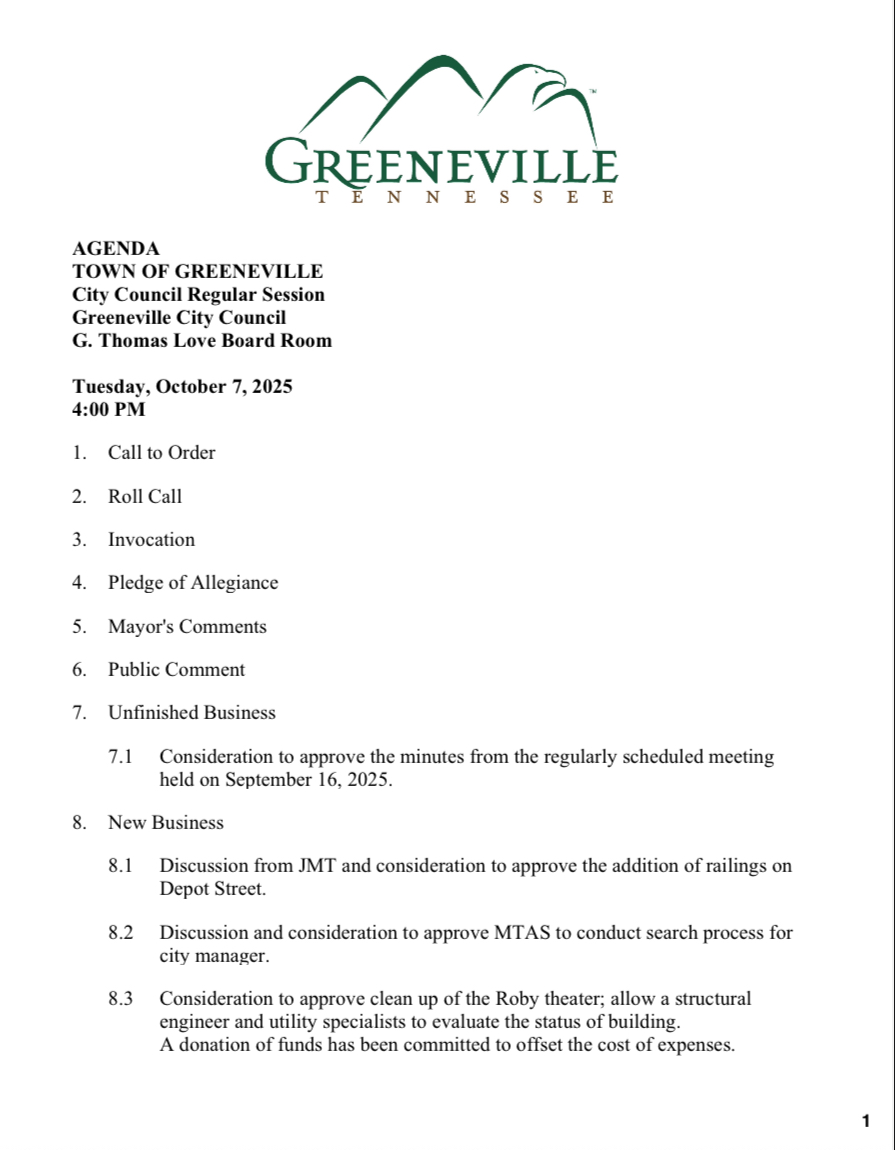 The Town of Greeneville will officially begin the search for a new City Manager next week.