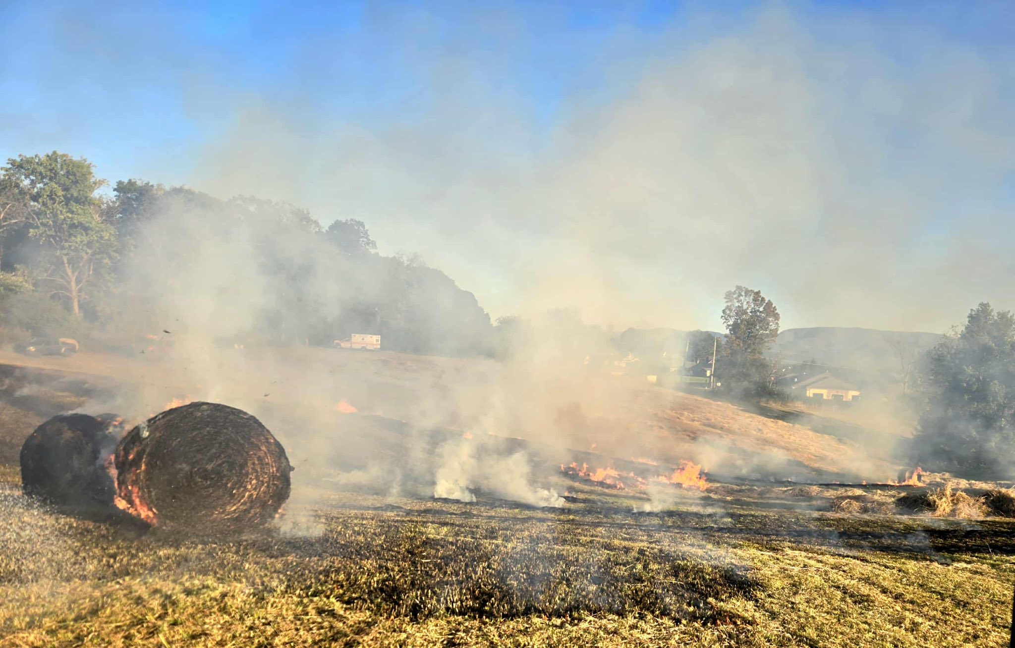 Tusculum Volunteer firefighters responded early Wednesday night to assist the Greeneville Fire Department along with Tennessee Wildland Fire, on a field of hay and a baler on fire on Morgan Road.