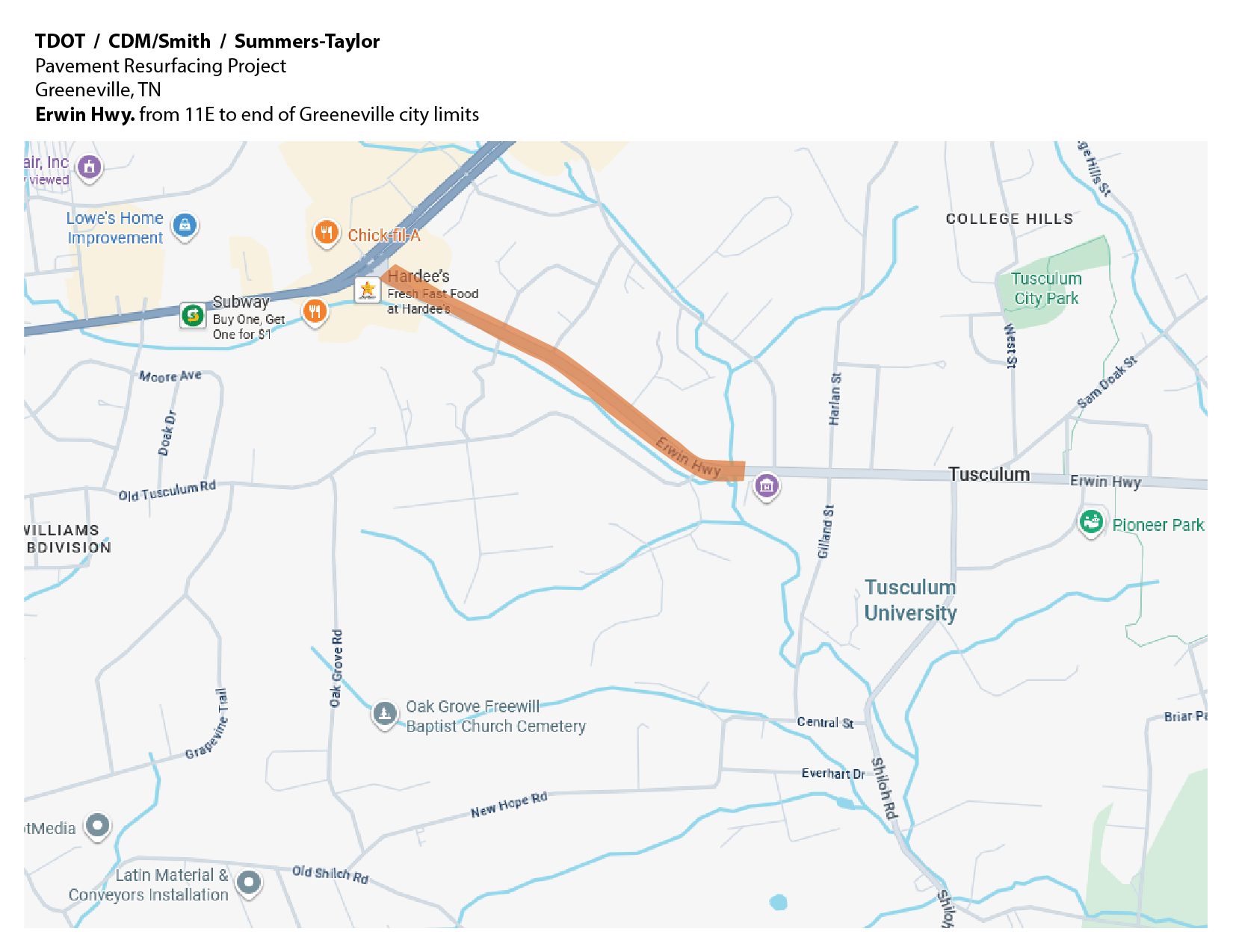 Work will begin Tuesday, October 21 with the first step that consists of milling sections of three roads. Wednesday, October 22 crews will be paving a segment (0.64 miles) of Erwin Highway from 11-E to the Greeneville and Tusculum city-limit line. When this section is complete, they will move paving operations to a 1.92-mile segment of Old Shiloh Road from Old Tusculum Road to Shiloh Road. Next, work will move to East Church Street to pave 1.2 miles between Bernard and Buckingham Drive, near Stratford Drive.