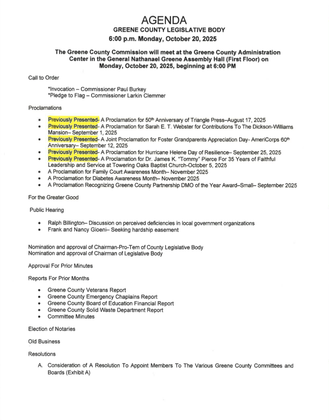 Greene County Commission Chairman, Chairman Pro-tem, Committees And Boards Approved