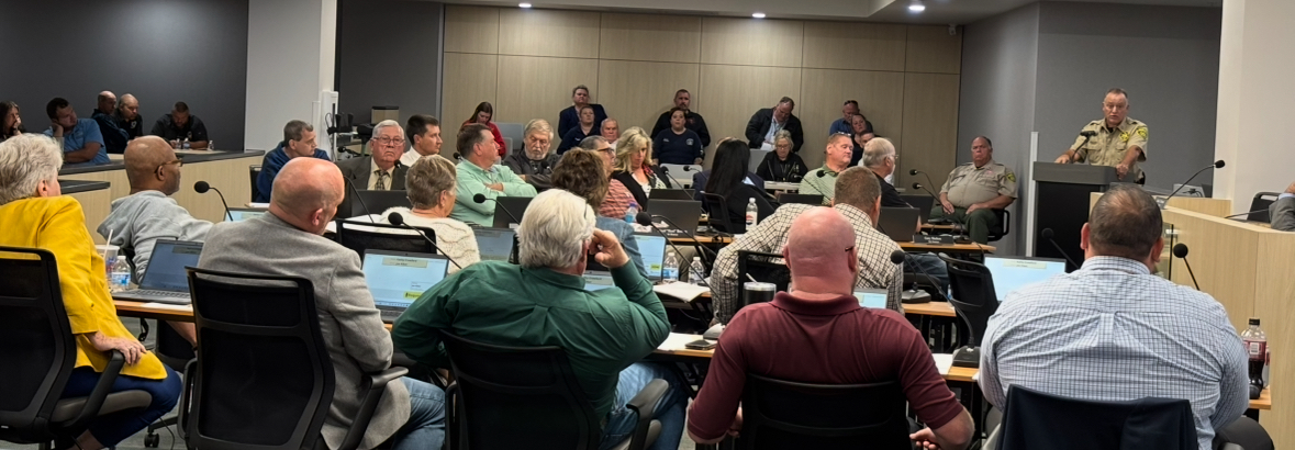 Greene County Sheriff Wesley Holt addresses commissioners concerning constable positions prior to the vote