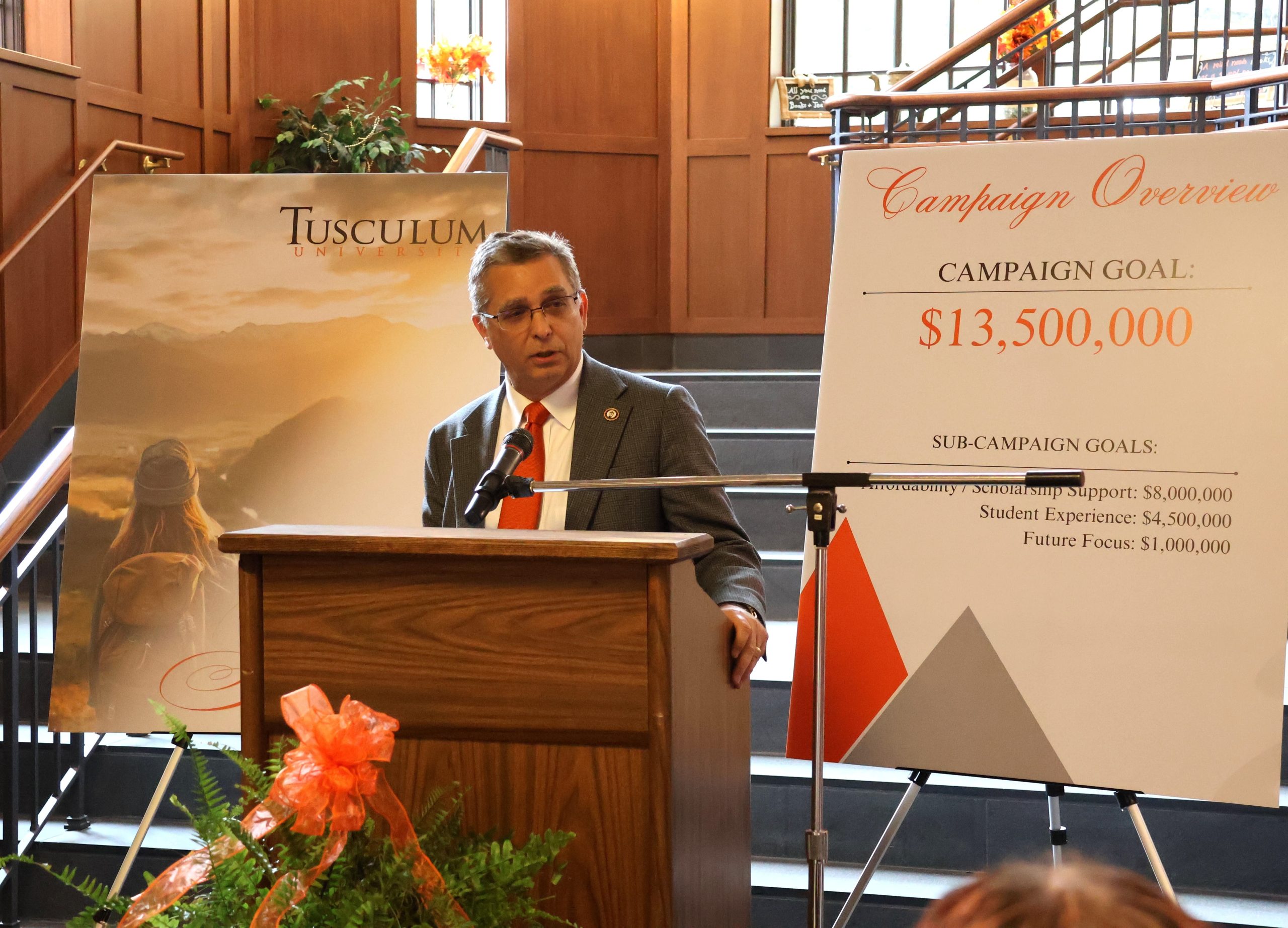 “Tusculum University was founded on the frontier itself,” he said. “Our nation was just a few years old. We were on the edge of the frontier. We were founded to serve and educate our students and our community on the frontier. That’s really not changed 231 years later. Pioneers have always been focused on the future. Help us to continue to look to the future, to move into what the frontier may hold for us. Help us get the word out. Make a gift. Every dollar counts.”