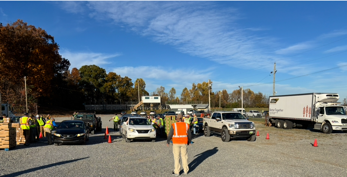 As the sun began to set on a mostly clear and pleasant weather day at the Greene County Fairgrounds, cars were still making their way through a well designed layout leading to the food distribution.